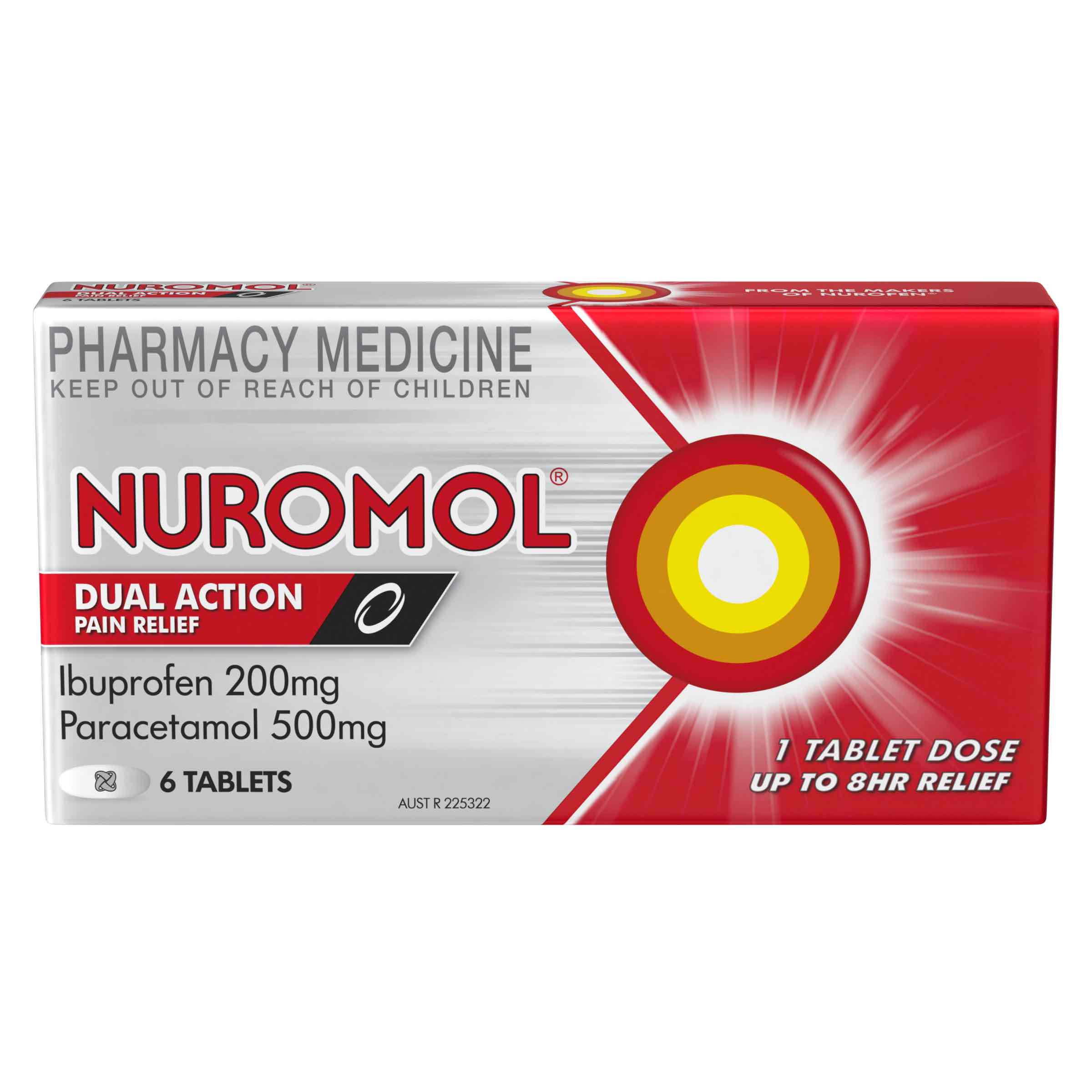 Nuromol 200mg Strong Pain Relief Tablets Ibuprofen/500mg Paracetamol 6 pack